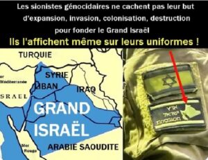 Bref le Moyen-Orient risque de s’embraser à court terme et la planète entière avec, sous la folie meurtrière de ses « messianiques fous de Dieu » avec leurs rêves diaboliques d’un « État juif aux frontières bibliques du Grand Israël », ceci en commettant un atroce Génocide auprès de la population palestinienne et par extension arabe. C’est donc pire que les extremistes islamistes de « Daech avec leurs illusoires État Islamique ».